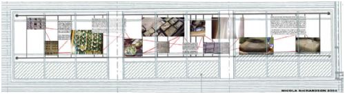 Commissioned as part of the re-development of the Herbert Art Gallery and Museum, Coventry, to produce a semi permanent work to span the Media corridor. The work explores the links between history, and the thrill of the spectator becoming an investigator trying to piece together some hidden mystery.